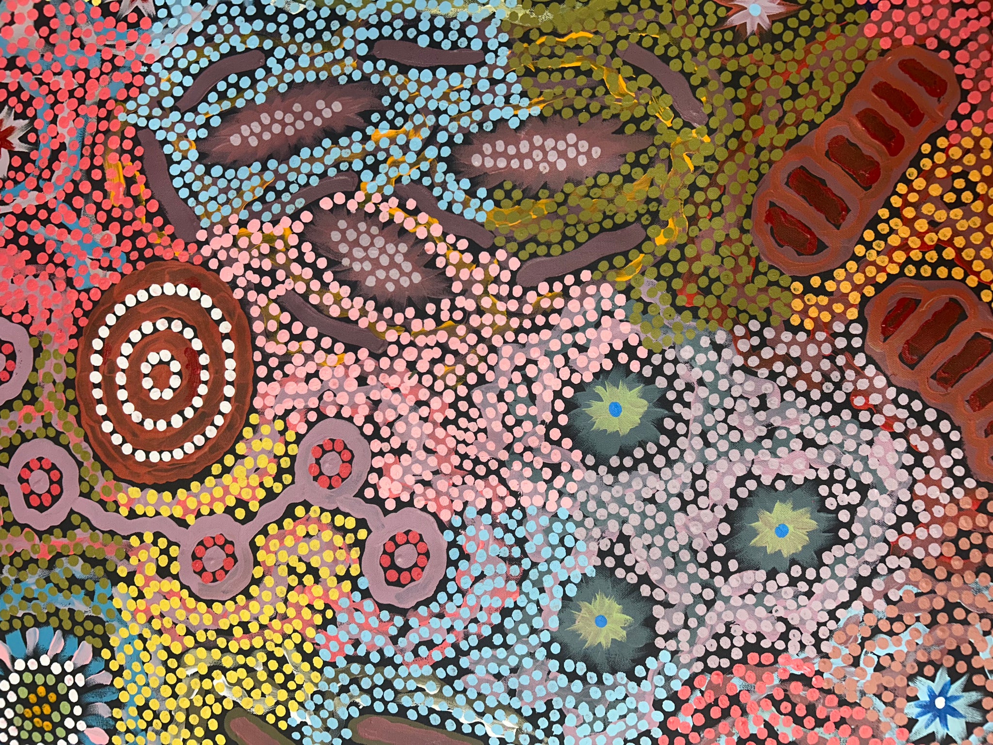Michelle is daughter to Emily Nakamarra Possum and Clifford Possum Tjapaltjarri, who is considered to be one of the most collected and renowned Australian Aboriginal artists. Michelle's paintings illustrated stories from her home country, Yuelamu in Mt Allan. They are aerial views of the landscapes and include important sites within her community.Â