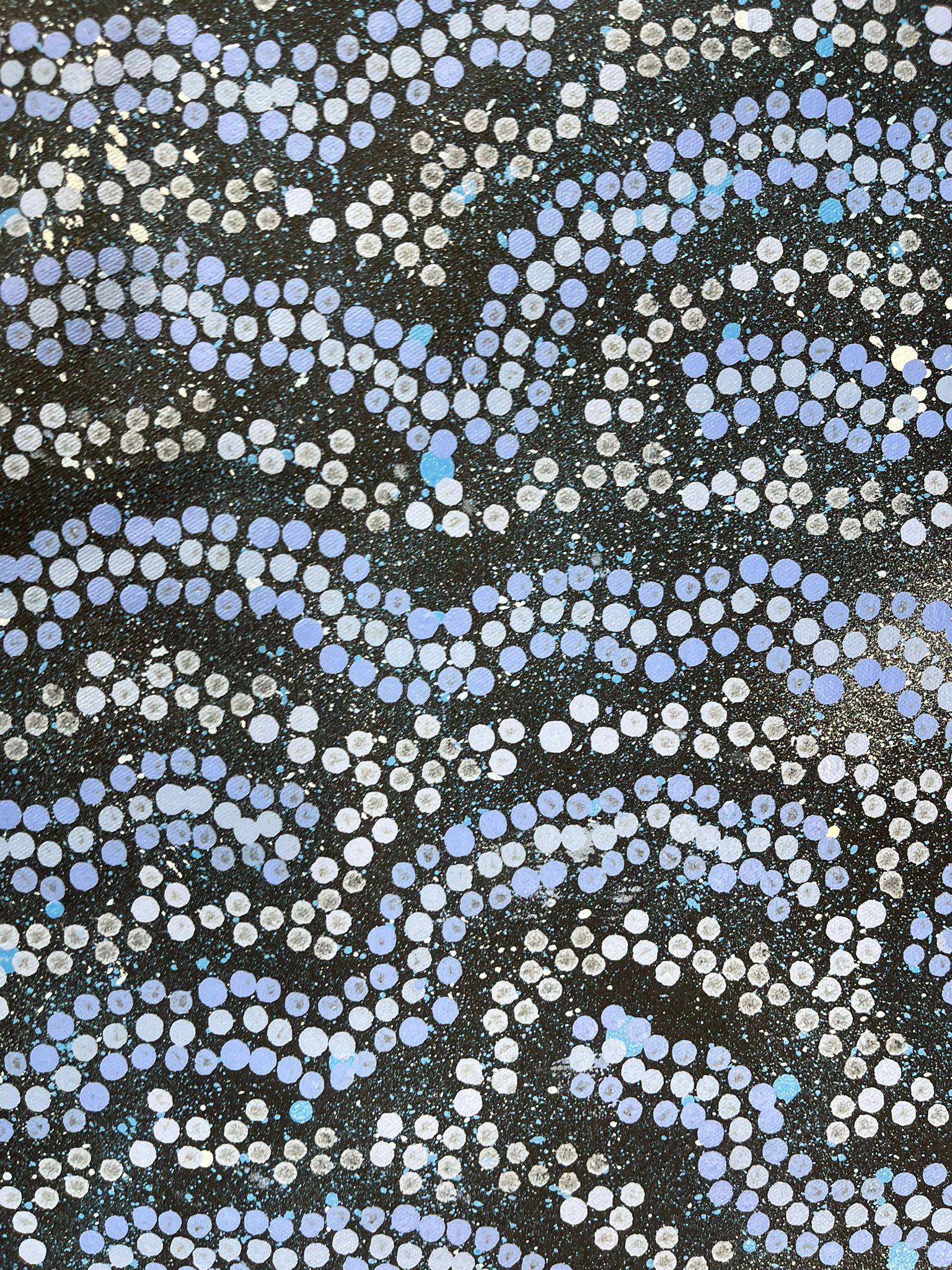 Michelle is daughter to Emily Nakamarra Possum and Clifford Possum Tjapaltjarri, who is considered to be one of the most collected and renowned Australian Aboriginal artists. Michelle's paintings illustrated stories from her home country, Yuelamu in Mt Allan. They are aerial views of the landscapes and include important sites within her community.