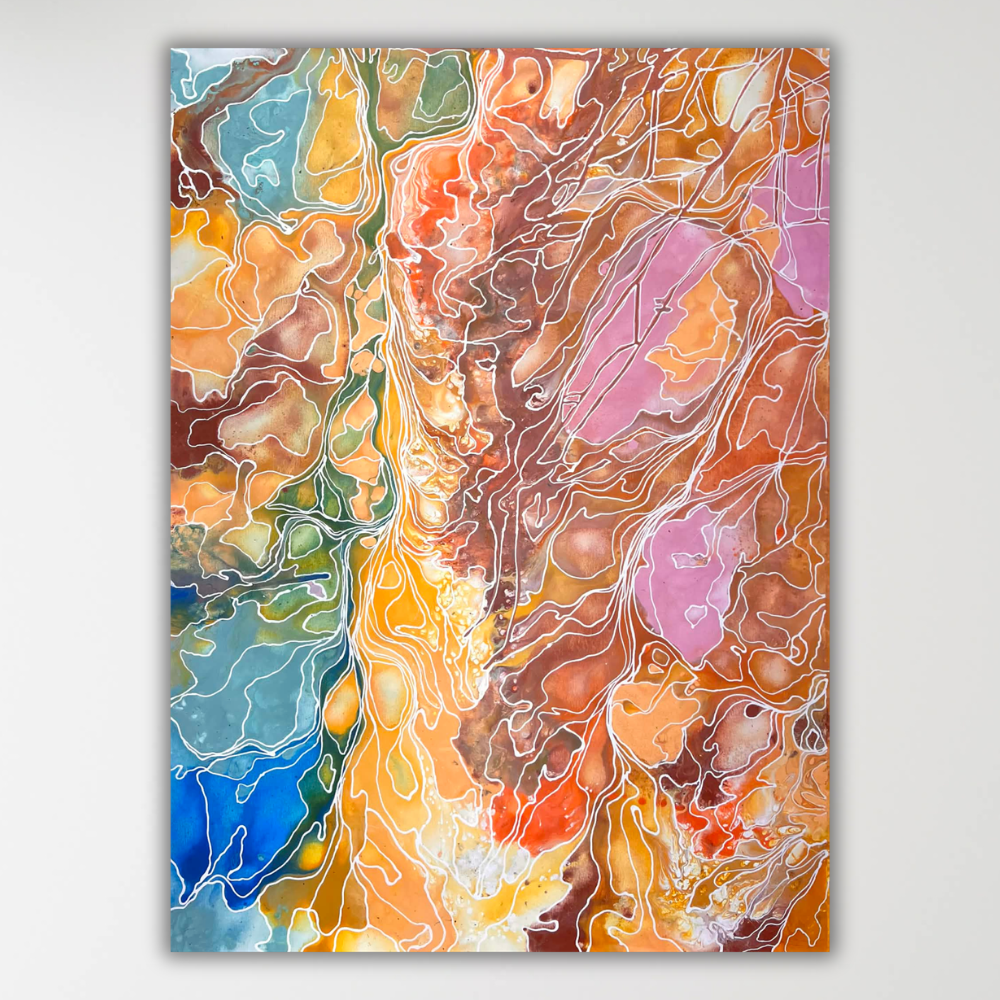 • Load image into Gallery viewer, Close up of artwork by Janice Stanley showing flow artwork.