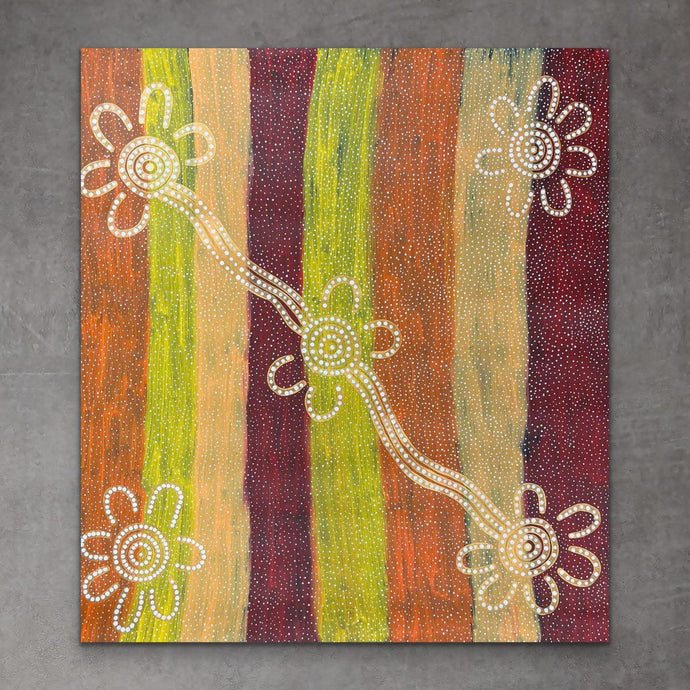 Discover a curated selection of original Aboriginal paintings priced under $1000. Each piece is hand-painted by established and emerging Indigenous artists from across Australia. This collection makes it easier to begin or grow your art collection with authentic works that carry cultural meaning and strong visual impact.