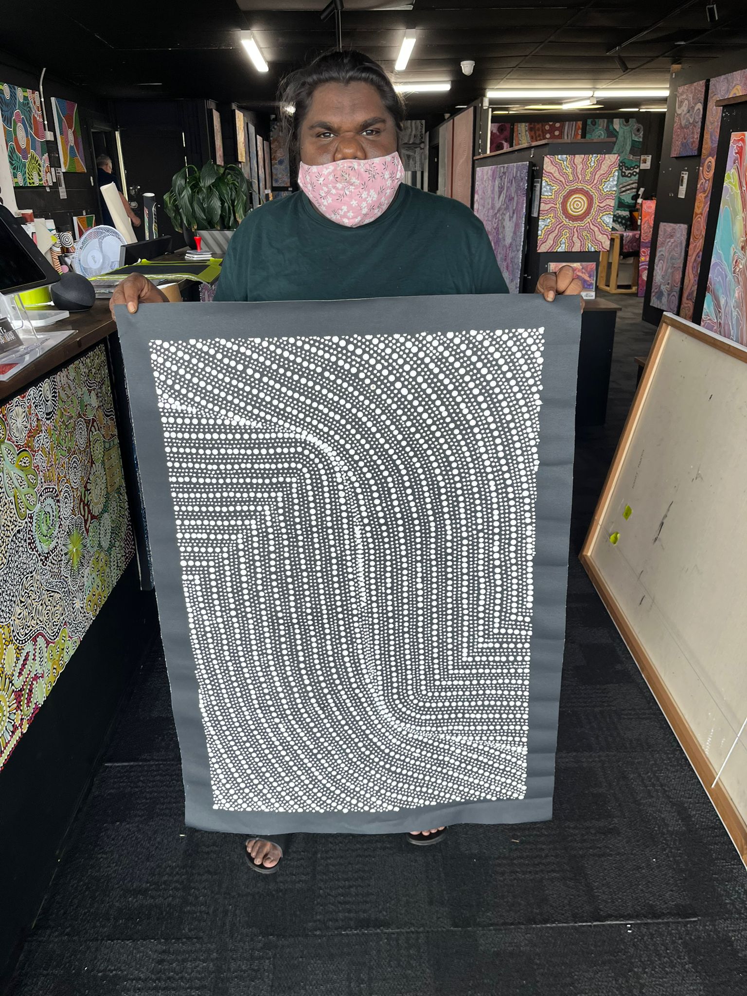 Tansy Martin, a Warlpiri artist from Willowra and granddaughter of the renowned Nancy Napangarti Martin, paints these stories with meticulous dot work and earthy tones. Her Bush Onion paintings celebrate the life-sustaining knowledge passed down through generations, honouring both the spiritual and practical connections between people and Country.