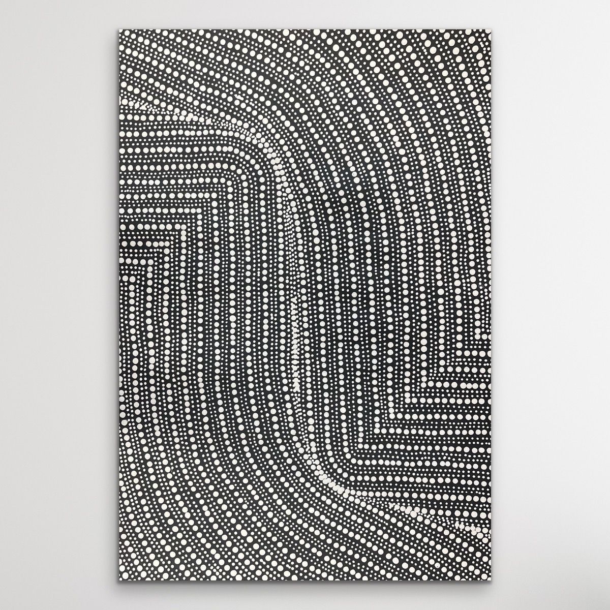 In Aboriginal art, the rounded shapes and fine dotting often represent the onions themselves, their seeds, or the patterns of their growth across the land. Pathways and curved lines may depict the movement of people gathering them or the underground channels that nourish the plants.